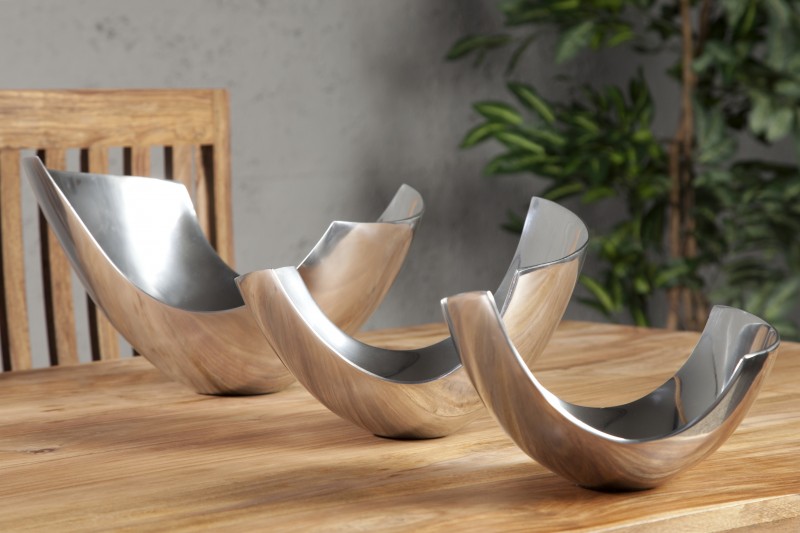 Námi nabízené dekorační mísy a poháry jsou skutečnými designovými skvosty. Nápadité tvary, hladké povrch a neobvyklé zpracování. Jsou jako unikátní myšlenky spojující čistotu, eleganci a nápaditost. Jsou to ojedinělé kousky zpracované profesionálními designéry a jejich tvar i povrch vzbuzuje kreativitu. Hladké kovové tvary, zpracování připomínající proutí či kamennou mísu, to vše jsou dekorační mísy a poháry od nás. Dekorační mísy Stefano ve třech velikostech, dekorační mísa Nicol s úzkým profilem či řada dekoračních mís Natura ve 4 velikostech od mini po velkou připomínající kamennou mísu