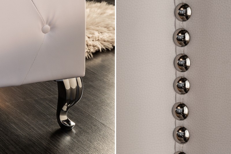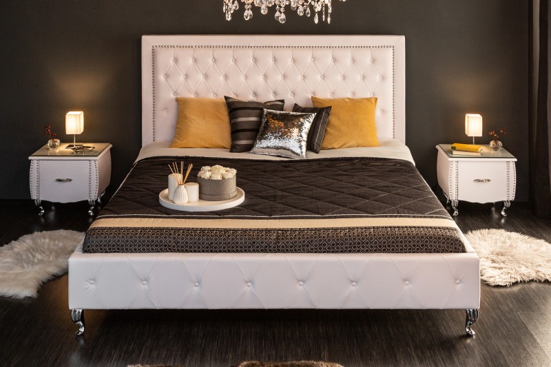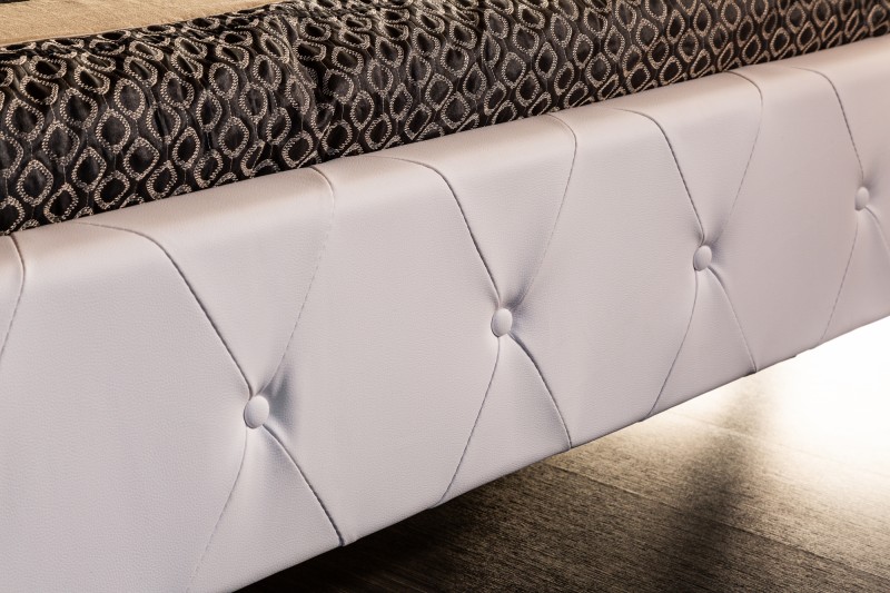 Tato kožená postel již na první postel uchvátí svým královským designem, lze si ji snadno představit jako luxusní postel, která zdobí přepychový zámek, ale i jako postel, která promění ložnici k nepoznání. Tento model je určen pro uživatele, kteří vyhledávají krásu a pohodlí. Dokonale tvarovaný zadní rám v kombinaci s polstrováním, které je rozděleno na dva vzory, dělají postel perfektní volbou pro luxusní ložnici.