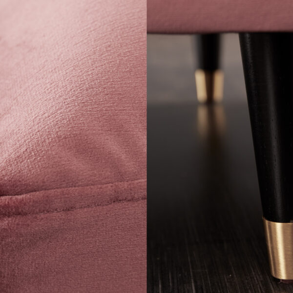 Potah: samet, materiálové složení potahové látky: 100% polyester, nohy: masivní dřevo – lakované, vnitřní pružinová výplň, lze namontovat na obě strany